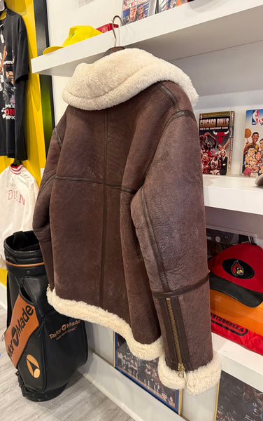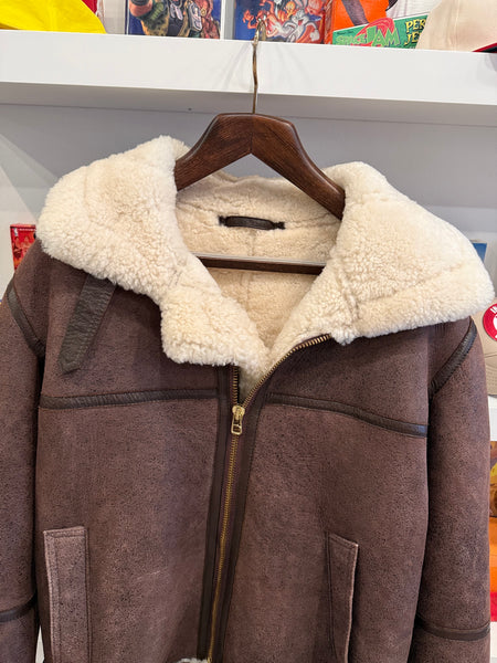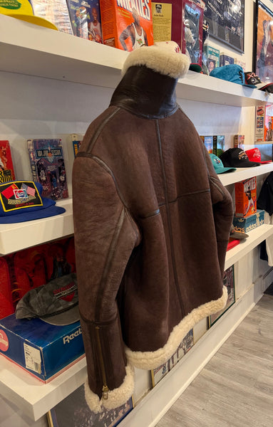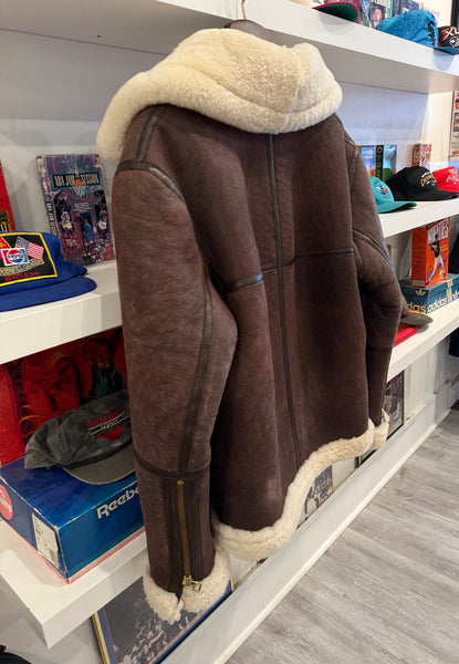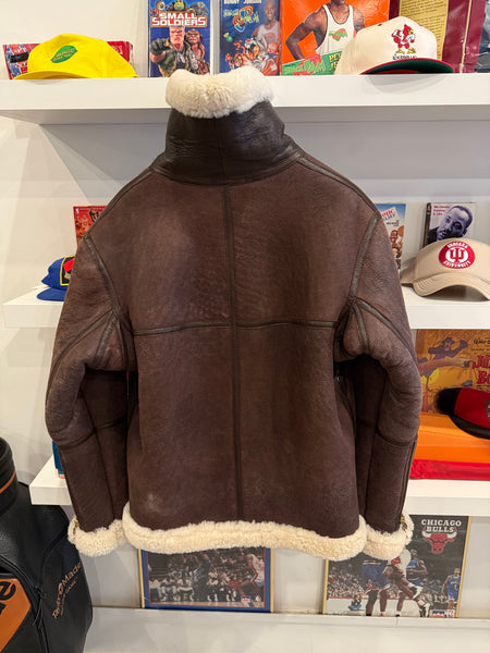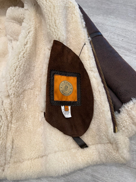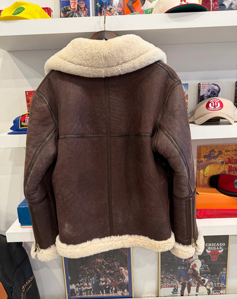 Vintage J.L. Powell Sheepskin Shearling Bomber Aviator Jacket Sz 44Fits Size L. See measurements below.